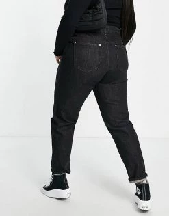 Wednesday’s Girl Curve High Waist Mom Jeans With Ripped Knees In Black Wash Denim For Women