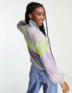 Wednesday’s Girl Relaxed Jumper With Balloon Sleeves In Zebra Knit For Women Purple Zebra