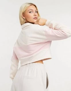 Wednesday’s Girl Relaxed Sweatshirt With Contrast Stripe For Women Pink Ivory Stripe