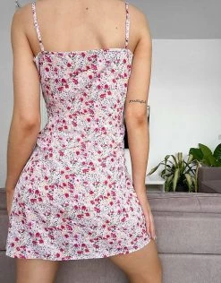 Wednesday’s Girl Mini Cami Dress With Ruching In Pretty Summer Floral For Women Pink Red Floral