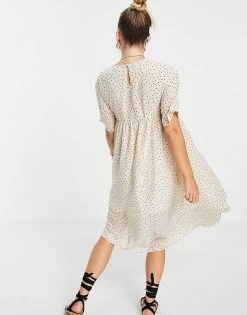 Wednesday’s Girl Maternity Mini Smock Dress With Tiered Skirt In Green Ditsy Floral For Women