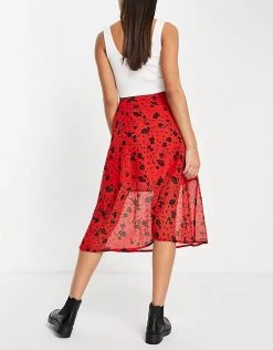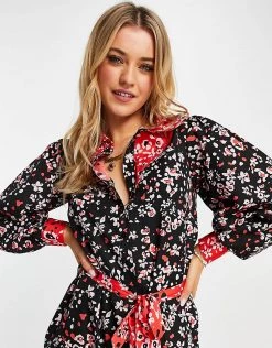 Wednesday’s Girl Midi Smock Dress With Collar In Bright Animal Print For Women Red Animal Print