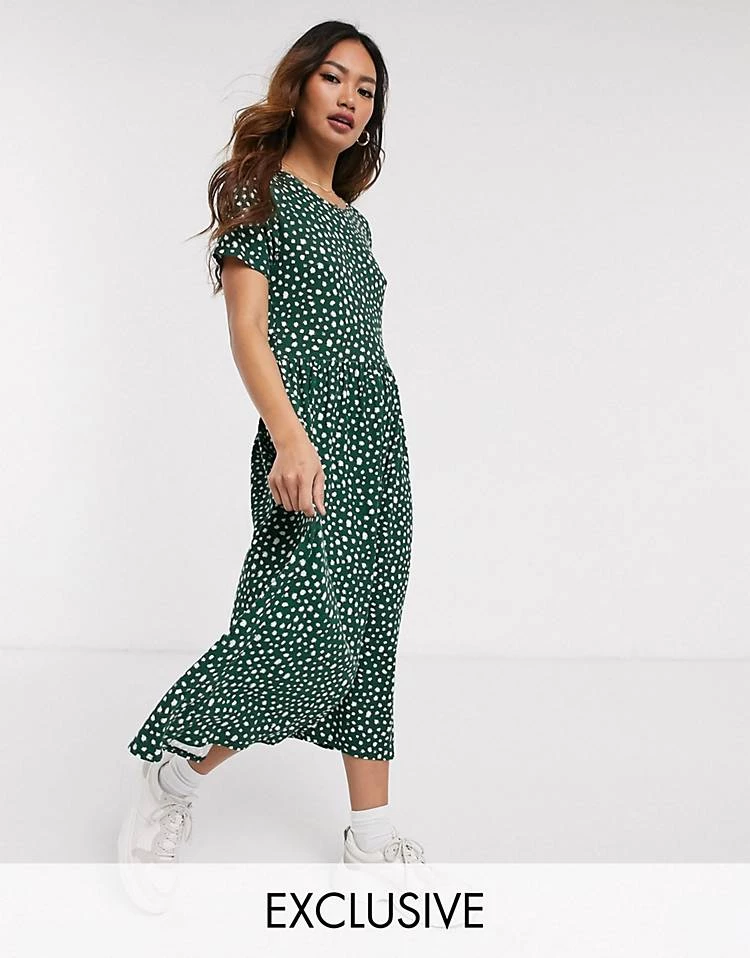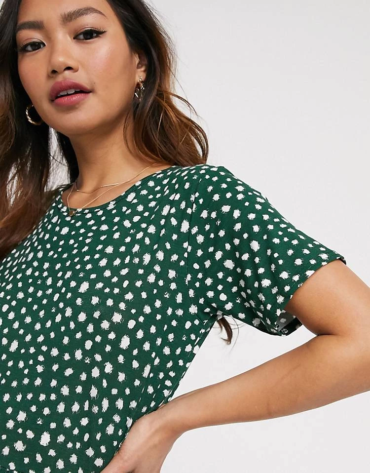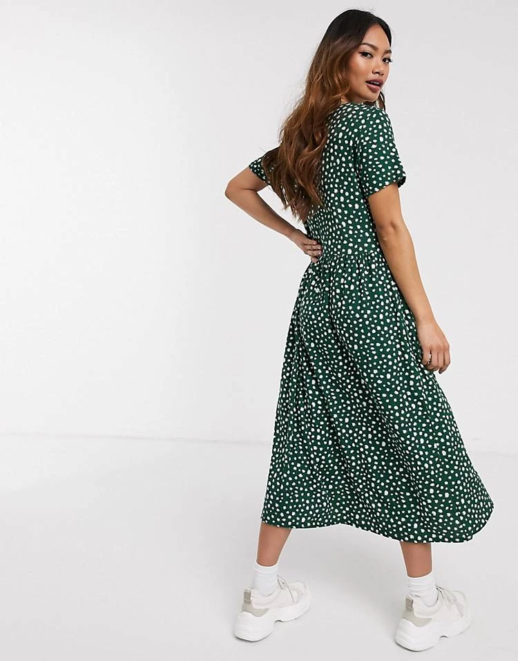 I absolutely love this dress! The smudge spot print is unique and adds a touch of character. The forest green color is rich and perfect for the season. The smock style is incredibly comfortable and flattering. It’s a great fit for my UK 10 size. Highly recommend!