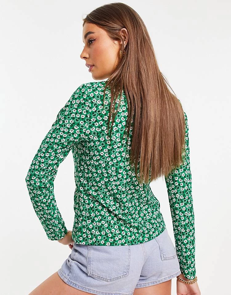 This shirt is a great throwback to the 90s with a modern twist. The jersey material is soft and breathable, making it ideal for all-day wear. The green ditsy floral design is eye-catching, and the ruched front gives it a unique look. However, I found the sleeves to be slightly shorter than expected. Still, a lovely piece overall.